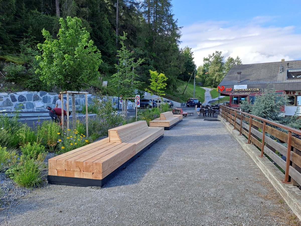 - Pose des bancs sur des structures métalliques afin d'assurer la stabilité