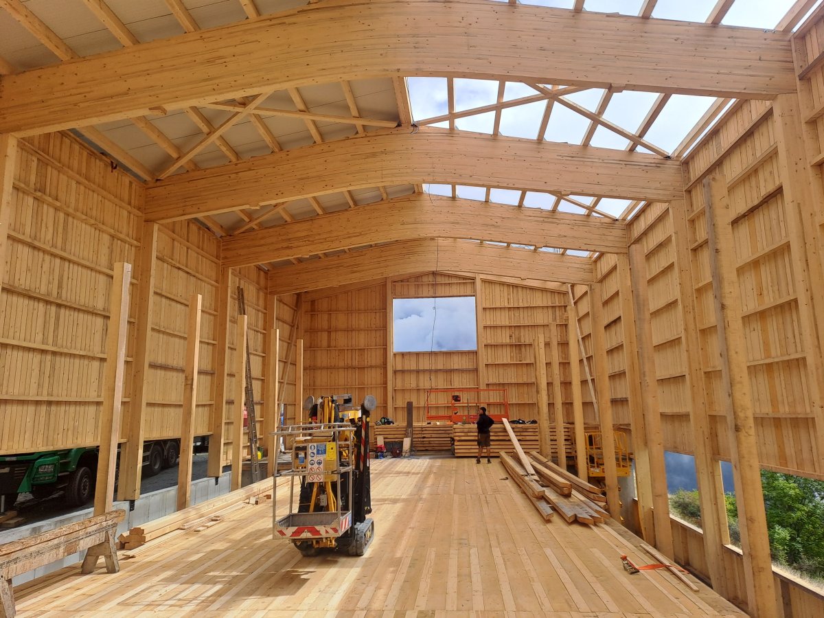 Construction d'une nouvelle ferme en bois massif pour un jeune agriculteur motivé