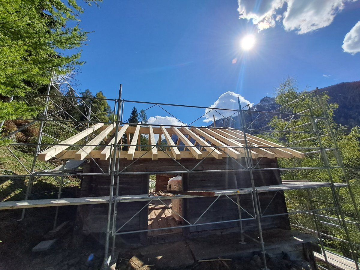 Réalisation d'une charpente en mélèze et pose de lames en arolle.